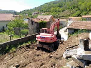 Les pelles-mécaniques sont à l’œuvre pour décaisser et préparer la construction prochaine du mur de soutènement.