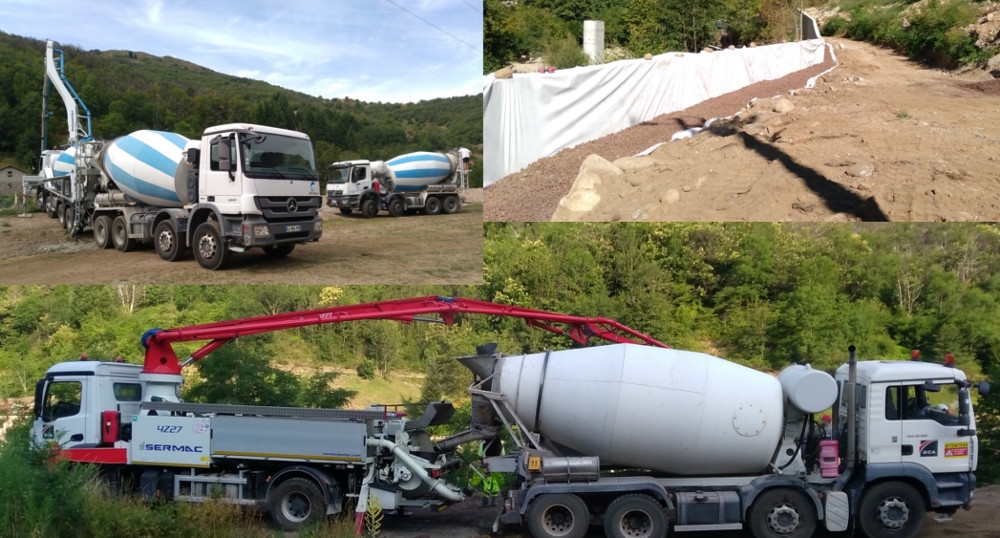 Dans les entreprises locales qui interviennent sur le chantier, il ne faut pas oublier de nommer les nombreux fournisseurs de matériaux de construction et leurs sous-traitants pour le transport. Les trois centrales à béton du bassin d’Aubenas sont ainsi régulièrement sollicitées (ABPE à Aubenas, Lafarge à Lavilledieu, Cemex à Labégude) ; mais aussi les différentes carrières du secteur.