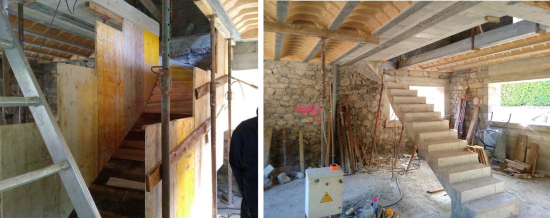 L’escalier indispensable a ensuite vu le jour. Comme vous le constatez, il reste là aussi bien du travail !