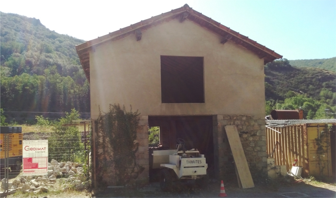 Sur le terrain, qui est actuellement en travaux en vue de réaliser une aire de dépose pour les cars, se trouvait une grange non aménagée. Nous avons décidé d’en faire un lieu logistique (privé).