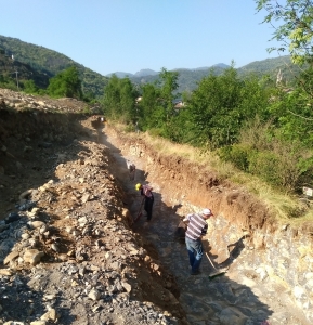 Juillet 2019 : le gros béton a été déposé au fond des fouilles