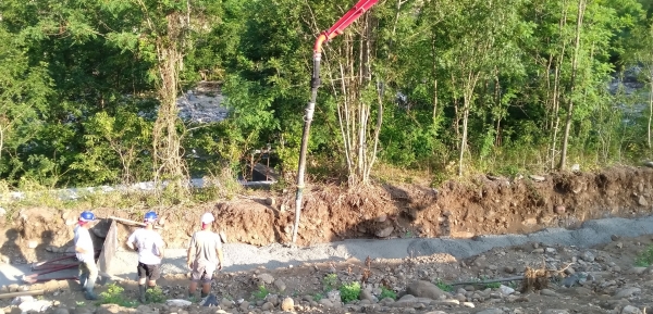 … soit à l’aide d’un camion pompe possédant un bras de 28 mètres et pouvant pomper deux mètres cubes à la minute !
