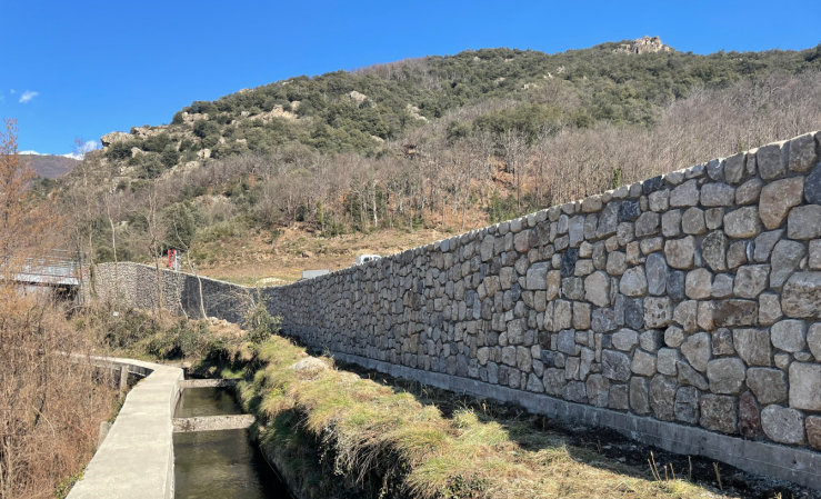 Par ailleurs, comme nous vous l’avions annoncé, le parement de la deuxième partie du mur (en amont de la passerelle) a commencé ce lundi. C’est l’entreprise Méjean, également de Burzet, qui est maintenant à l’œuvre. Nous vous présenterons très prochainement son travail !