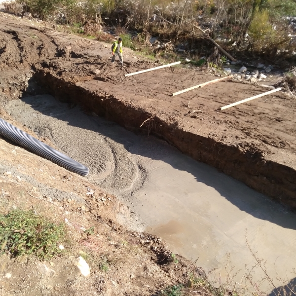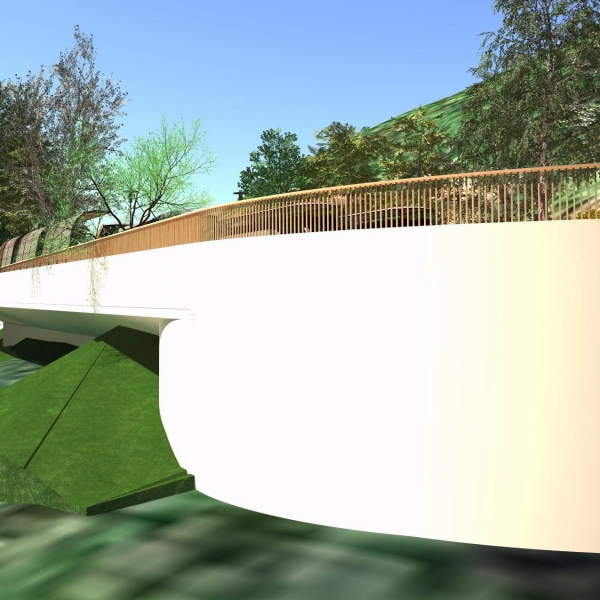 De l’autre côté de la Bourges, du côté de la route départementale, une aire de dépose des pèlerins est prévue. Elle a la particularité d’avoir toute une partie en surplomb afin d’agrandir cette aire sans empiéter sur le lit de la rivière.