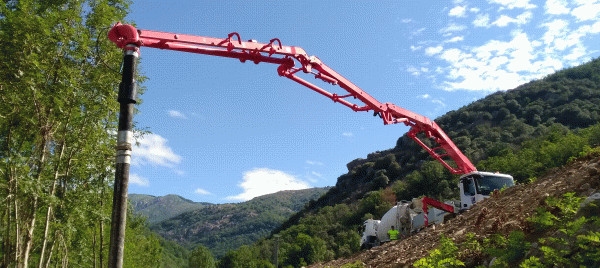 A l’instar de la première phase des fondations, pour les endroits inaccessibles aux toupies, le camion pompe est une nouvelle fois venu faire son travail.